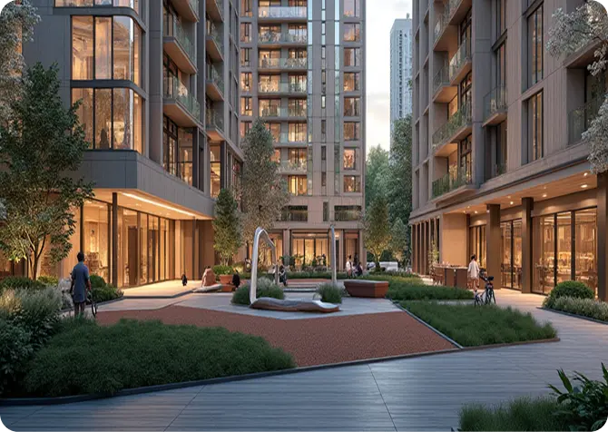 полностью развитая и готовая инфраструктура: магазины, школы остановки и пр.